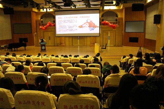 2017年11月10日13:00,我校第十四期博雅讲堂第五讲在理化楼五楼音乐厅举行。本次课程问鼎官方网站/app/ios/安卓/在线/注册邀请了辽宁省传统文化研究会理事常永坤老师做《文化复兴,任重道远——当代大学生如何从传统文化中汲取精神力量》主题讲座。报告会由学生处郝颖颖老师主持,问鼎官方网站/app/ios/安卓/在线/注册部部长、学生处处长白雪峰,各学院辅导员以及200余名学生出席并参加了讲座。