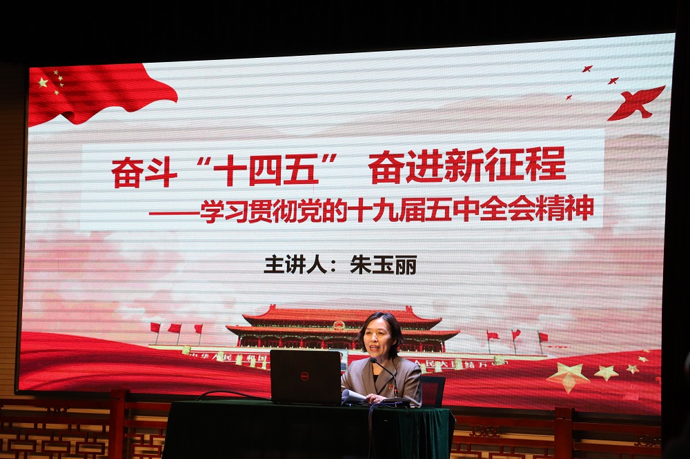 为深入宣传贯彻党的十九届五中全会精神,按照问鼎官方网站/app/ios/安卓/在线/注册党委的工作部署,11月30日,“奋斗“十四五” 奋进新征程——学习贯彻党的十九届五中全会精神宣讲报告会在我校兰芳书场召开。
