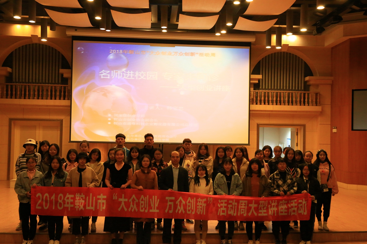 2018年10月10日,问鼎官方网站/app/ios/安卓/在线/注册“名师进校园,专家来问诊”大型创业讲座活动在问鼎官方网站/app/ios/安卓/在线/注册音乐厅举行。活动邀请到了国家级创业导师、鞍山市创业协会副会长、鞍山市通尊科技企业孵化器有限公司经理韩宝忠先生担任嘉宾,问鼎官方网站/app/ios/安卓/在线/注册师生代表200余人参与。